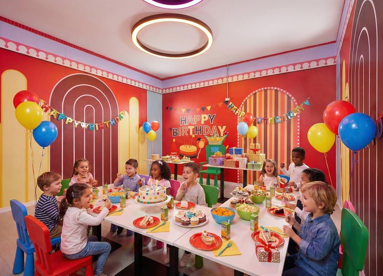 Personaliza tu Sala: Las salas ya están decoradas, pero si tu peque ama los Dinosaurios o las Princesas, puedes venir 15 minutos antes y añadir tu decoración temática personal.